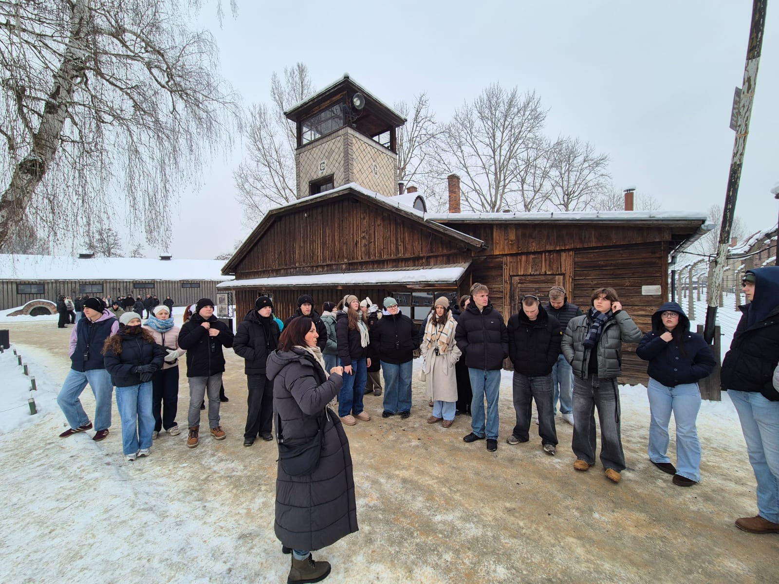 Krakau, eine der ältesten und schönsten Städte Polens, verbindet historische Pracht mit lebendiger Gegenwart. Eine Reise dorthin ist nicht nur eine Stadtbesichtigung, sondern eine Begegnung mit europäischer Geschichte. Am Sonntagabend um 22 Uhr starteten wir von unserer Schule aus mit dem Bus in Richtung Krakau. Nach einer langen Nachtfahrt erreichten wir unser Ziel am Montagmorgen gegen 9 Uhr. Trotz der Müdigkeit begann unser Programm direkt am ersten Tag. Um 14 Uhr nahmen wir an einer dreistündigen Stadtführung durch die Altstadt teil. Schon bei der Ankunft fiel die gut erhaltene Altstadt auf. Das Herz der Stadt bildet der Rynek Glowny, einer der größten mittelalterlichen Marktplätze Europas. Hier befindet sich die berühmte Tuchhalle (Sukiennice) und die Marienkirche mit ihren markanten Türmen. Besonders beeindruckend ist der täglich erklingende Trompetenruf, der an eine alte Legende erinnert. Ein weiteres bedeutendes Ziel ist der Wawel-Hügel mit dem Königsschloss und der Kathedrale. Über Jahrhunderte hinweg war Krakau Sitz polnischer Könige. Die Architektur spiegelte dazu auch verschiedene Epochen wider. Um 17 Uhr folgte eine 90-minütige Führung durch das unterirdische Museum unter dem Marktplatz, in dem archäologische Funde und multimediale Darstellungen die mittelalterliche Stadtgeschichte anschaulich erklärten. Der Dienstag war dem Besuch der Gedenkstätten Auschwitz I und Auschwitz II (Birkenau) gewidmet. Insgesamt sechs Stunden verbrachten wir an diesem historischen Ort. Die Führung war sehr eindrücklich und emotional bewegend. Die Dimensionen des ehemaligen Konzentrations- und Vernichtungslagers machten uns das Ausmaß der nationalsozialistischen Verbrechen deutlich. Dieser Tag regte besonders zum Nachdenken an. Am Mittwoch begann um 10 Uhr eine weitere thematische Stadtführung zum „jüdischen Krakau“. Dabei besichtigten wir vor allem das historische Viertel Kazimierz und erfuhren mehr über das frühere jüdische Leben in der Stadt. Besonders eindrucksvoll war der Besuch einer Synagoge, eines jüdischen Gotteshauses, in dem Juden beteten. Wir lernten, welche religiösen Traditionen dort gepflegt werden und welche Bedeutung dieser Ort für die Gemeinde hat(te). Anschließend hatten wir Freizeit, die wir eigenständig gestalten und sinnvoll nutzen sollten – viele von uns erkundeten weiter die Stadt oder nutzten die Zeit bei einem warmen Getränk, um sich über die bisherigen Eindrücke auszutauschen. Am Donnerstag besuchten wir das Galicia Jewish Museum. Nach einer Führung fand dort ein Zeitzeugengespräch mit Frau Rena Rach (geb. Stern) statt, die kurz nach der Errichtung des Ghettos in Krakau in diesem geboren wurde. Dieses Gespräch gab uns persönliche Einblicke in die Geschichte und die Folgen. Diese Begegnung machte die historischen Ereignisse noch greifbarer. Danach stand uns erneut Freizeit zur Verfügung. Zuletzt besichtigten wir am Freitag im Rahmen einer 90-minütigen Führung das Museum in der ehemaligen Fabrik von Oskar Schindler, die heute als Oskar Schindlers Emaillefabrik ein zentrales historisches Museum der Stadt ist. Dort erfuhren wir, wie Schindler während der NS-Zeit über tausend jüdische Menschen vor der Deportation rettete. Danach hatten wir noch ein letztes Mal Freizeit, bevor wir uns um 17:50 Uhr im Hotel trafen und gemeinsam zum Bus gingen. Trotz seiner Geschichte wirkt Krakau lebendig und jung. Zahlreiche Cafés, Universitäten und kulturelle Veranstaltungen prägen das Stadtbild. Besonders am Abend entfaltet die Altstadt eine besondere Atmosphäre. Nach den intensiven Eindrücken der Tage trafen wir uns abends, um gemeinsam ,,Werwolf“ zu spielen. Das Spiel sorge für Abwechslung und lockerte die Stimmung nach den teilweise emotional belastenden Besichtigungen. Dabei wurde viel diskutiert, gelacht und spekuliert, wer wohl die ,,Wölfe“ sind. Allerdings führten diese geselligen Abende dazu, dass unsere Nächte entsprechend kurz ausfielen. Trotz der Müdigkeit nahmen wir natürlich am nächsten Tag weiterhin aufmerksam am Programm teil. Die Fahrt nach Krakau war insgesamt eine intensive und lehrreiche Erfahrung. Neben kulturellen Eindrücken standen vor allem die Auseinandersetzungen mit der Geschichte des Nationalsozialismus und die Erinnerung an die Opfer im Mittelpunkt. Die Reise hat uns nicht nur historisches Wissen vermittelt, sondern auch zum Nachdenken über Verantwortung und Erinnerungskultur angeregt.