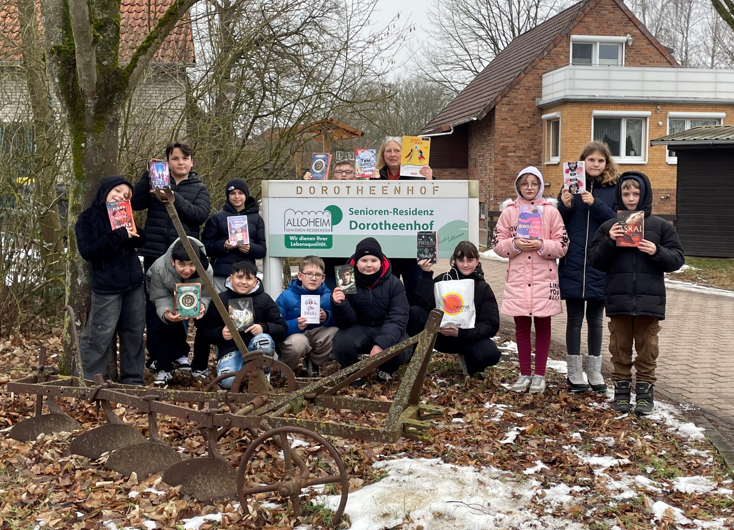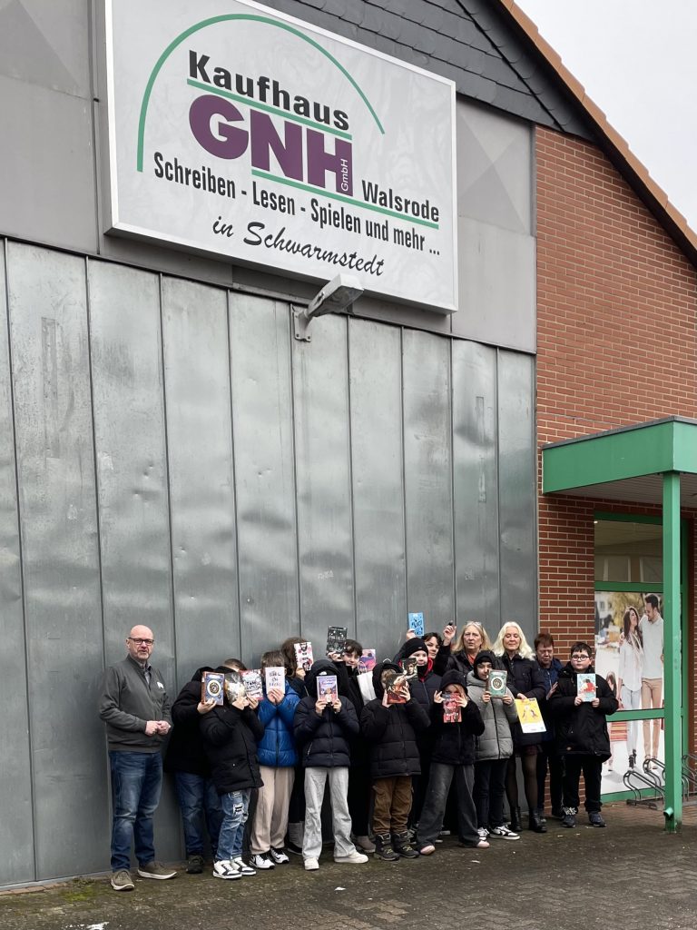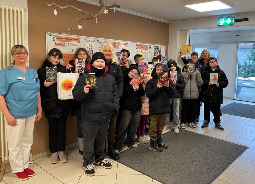Lesen ist wichtig, Lesen macht Spaß. In der KGS hat man das Projekt „Lesen macht stark“ ins Leben gerufen, um diese so wichtige Kompetenz zu fördern. Damit dies gelingt, ist es unter anderem wichtig, dass den Kindern und Jugendlichen altersgerechtete interessante Bücher zur Verfügung stehen, in die man sich in Ruhe vertiefen kann. Neben der Koordinatorin Sandra Radtke ist auch Lehrerin Janine Wittenburg in das Projekt eingebunden und arbeitet mit ihren Klassen daran mit. Als Lehrerin ist sie zudem regelmäßig mit einem Profilkurs im Dorotheenhof in Schwarmstedt; die Schüler:innen gewinnen in diesem Rahmen Einblicke in die Pflegeberufe. Als man dort nach einer sinnvollen Verwendung der Spendengelder der jährlichen „Eisparty“ suchte, kam die Idee auf, das Geld für neue Bücher zu verwenden. Die beiden Ergotherapeutinnen Ivonne Obara-Tietz und Martina Matyschok überreichten dann in der KGS einen Spendenscheck in Höhe von 477,00 Euro, der jetzt über den Verein der Ehemaligen zum Einkauf der Bücher genutzt wurde. Torsten Grünhagen, Geschäftsführer beim Kaufhaus GNH und ehemaliger Schüler der Wilhelm-Röpke-Schule, war von der Idee und dem Projekt begeistert und spendete spontan drei zusätzliche attraktive Bücher. Er sah dann auch gleich, welche Begeisterung das in der Klasse von Janine Wittenburg und Claudia Macke auslöste, denn die beiden holten den Büchersegen mit ihren Schüler:innen selbst ab.