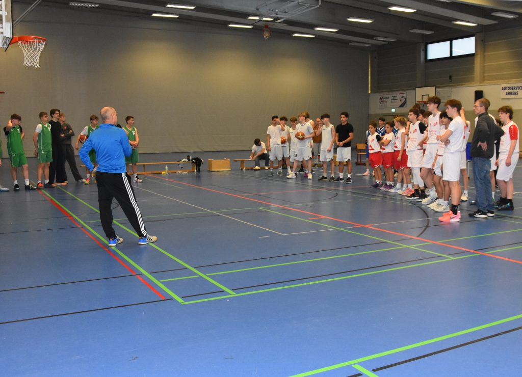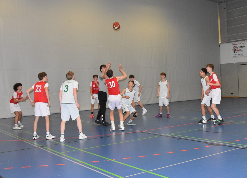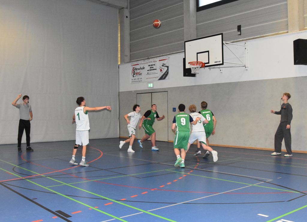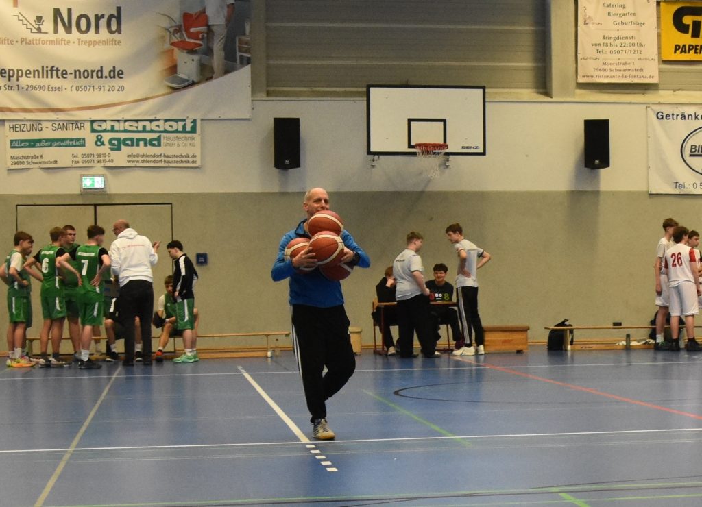 Zur Kreisauswahlgruppe beim Schulsportwettbewerb „Jugend trainiert für Olympia“ im Basketball gehören die Landkreise Harburg, Lüneburg, Lüchow-Dannenberg, Uelzen, Celle und der Heidekreis. Zum Turnier der männlichen Basketballjugend in den Altersklasse U18 und U16 in der Sporthalle der KGS waren Schulmannschaften aus Buchholz, Seevetal und Lüneburg angereist, um mit den Schwarmstedtern um die Plätze beim Bezirksturnier zu kämpfen. Thomas Hähne und Sascha Neubert hatten alles perfekt geplant und die Junioren auf das Turnier vorbereitet. Alle Mannschaften waren pünktlich vor Ort und hochmotiviert, so dass die zahlreichen Zuschauer:innen in der gut besuchten Sporthalle gute Spiele geboten bekamen. Schnell musste man jedoch einsehen, dass die Jugendlichen von der Wilhelm-Raabe-Schule in Lüneburg an diesem Vormittag nicht zu schlagen waren. Zum einen hatte ihr Trainer sie hervorragend eingestellt und zum anderen spielen alle in ihrer Freizeit beim MTV Treubund Lüneburg bei den 66ern; eine Basketballabteilung, die schon 1966 gegründet wurde und allein im Bereich der männlichen Jugend 14 Mannschaften aufweist (2xM18, 4xM16, 3xM14, 3xM12 und 2xM10), dazu kommt eine Mixed-U08 Mannschaft. Da konnten die anderen Schulmannschaften verständlicherweise nicht mithalten.