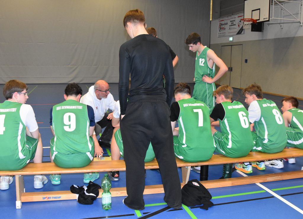 Aber niemand muss die Köpfe hängen lassen, auch die U16 Mannschaften vom Albert-Einstein-Gymnasium aus Buchholz und von der KGS Schwarmstedt und die U18 Mannschaften der IGS Seevetal und der KGS Schwarmstedt spielten motiviert und ansehnlich und ließen sich trotz der Überlegenheit nicht hängen. Detlev Zeidler, der als Beobachter von „Schulsport Niedersachsen“ zu Gast war, zeigte sich mit den Spielen und den Schiedsrichterleistungen zufrieden. In der Gruppe der U18 schlug Lüneburg im ersten Spiel Seevetal mit 47:16, anschließend besiegte das Team der KGS die Seevetaler mit 33:14, um dann im letztes Spiel gegen Lüneburg mit 26:53 eine deutliche Niederlage einzufahren. Als Zweitplatzierte haben sich die Schwarmstedter damit für den Bezirksentscheid qualifiziert.