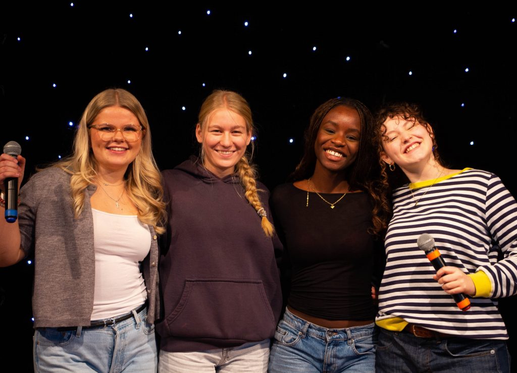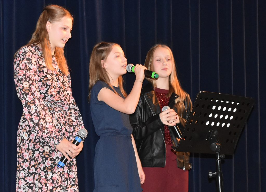 Zur Auflockerung der Veranstaltung und zur Überbrückung der Wartezeiten bei den Juryentscheidungen traten im Laufe der beiden Wettbewerbe Sängerinnen aus der Gesangs-AG von Frau Dumke auf. Nina Bloemberg, Celine Friedrich, Lisa Engehausen und Mila Pralle boten in professionellem Stil einige Lieder dar und erfreuten das Publikum.